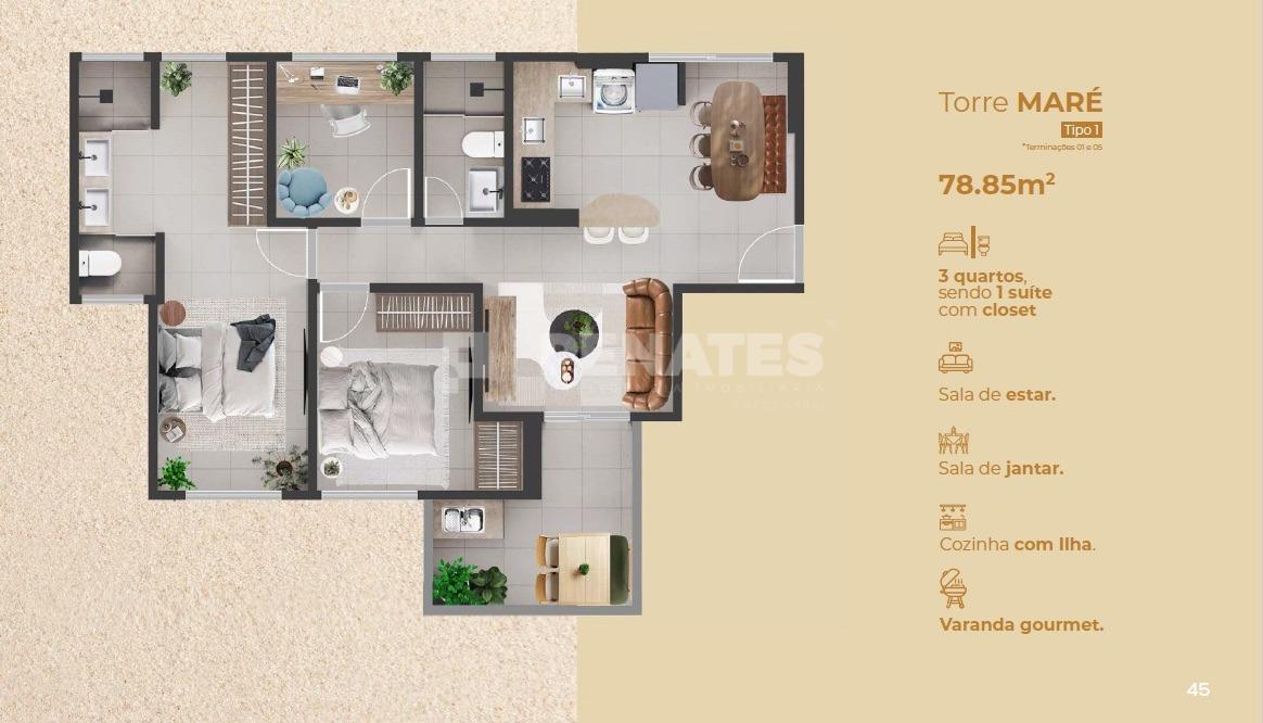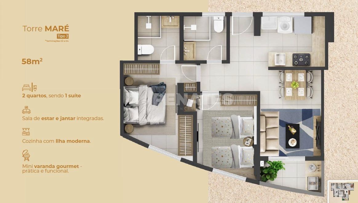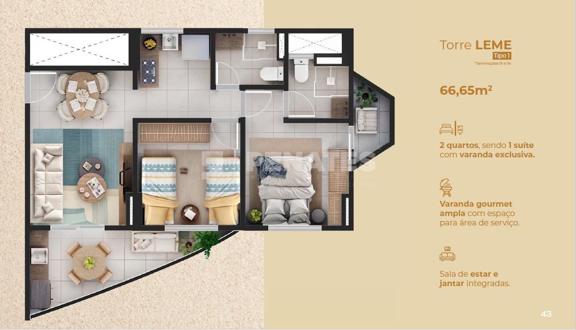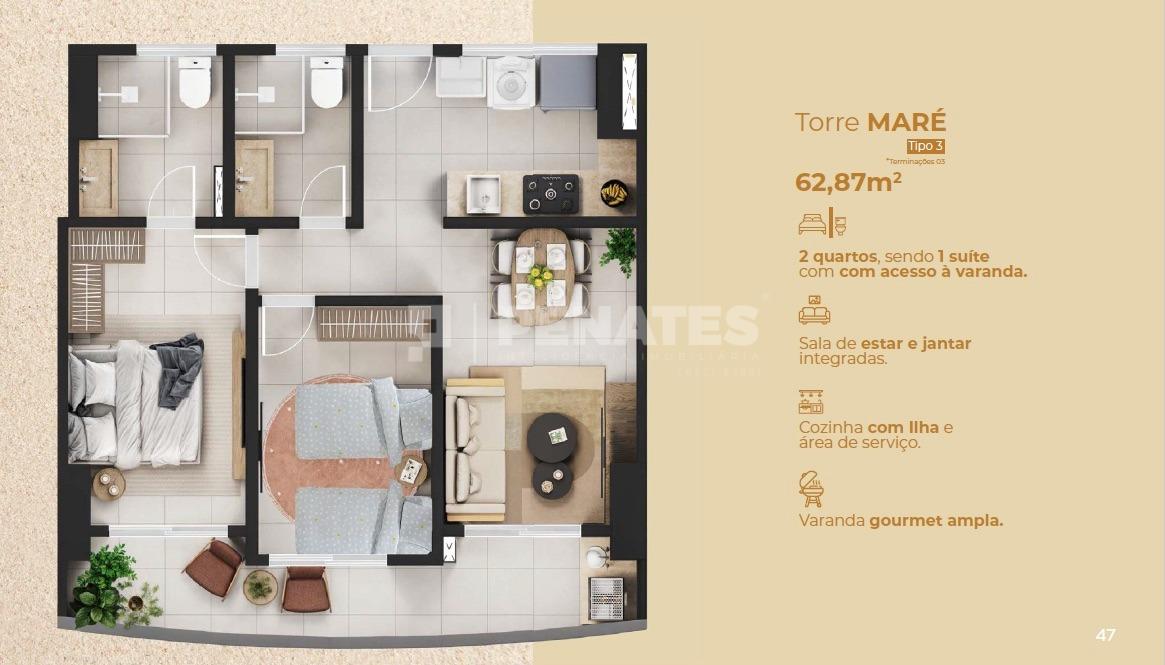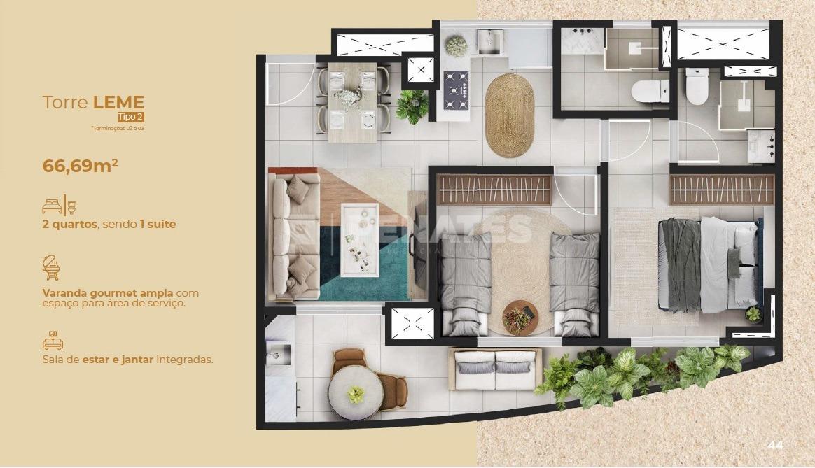 Opções com 2 ou 3 quartos, sendo 1 suíte
