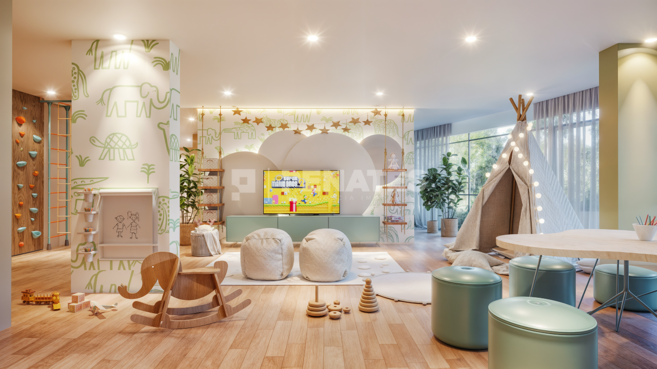 Salão de festas, brinquedoteca montessoriana e playground