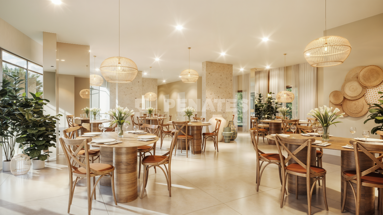 Academia equipada, quadra poliesportiva, mini market, lavanderia compartilhada, espaço pet e delivery center