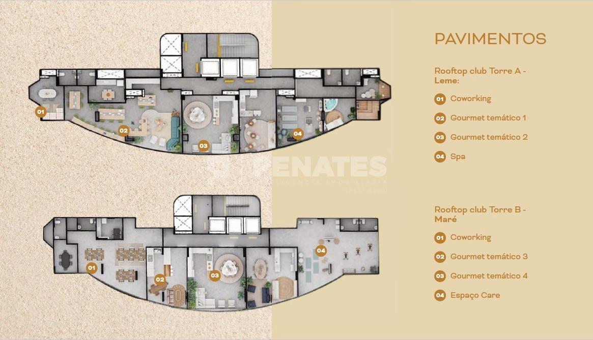 Rooftop Club em ambas as torres com espaços gourmet temáticos: